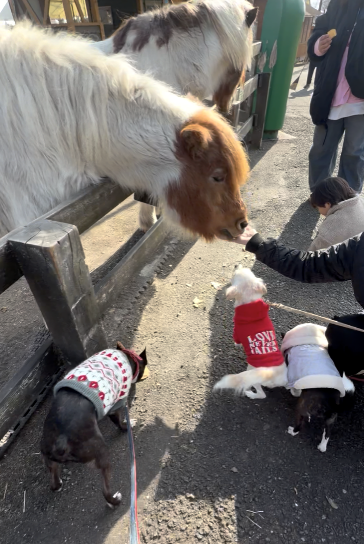 久しぶりにまかいの牧場に行ってきました。前回はイギーちゃんと行ったきりなので5年ぶりでしたが、入り口がわからないほどオシャレになっていてお客様の8割が外国人でした。馬、羊、ヤギ、牛さんと触れ合い園内のドッグランでのびのびと遊べました。帰りに朝霧ドライブインもちやに寄っておろし餅、あんころ餅、きなこ餅を爆食い。めちゃくちゃ美味しいのでオススメです。この辺りは昭和と令和の建物が入り混じってて面白いですね。
