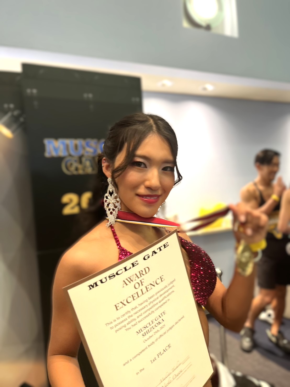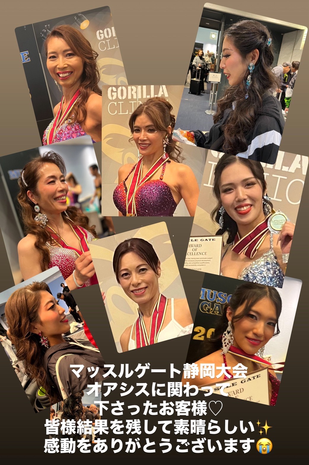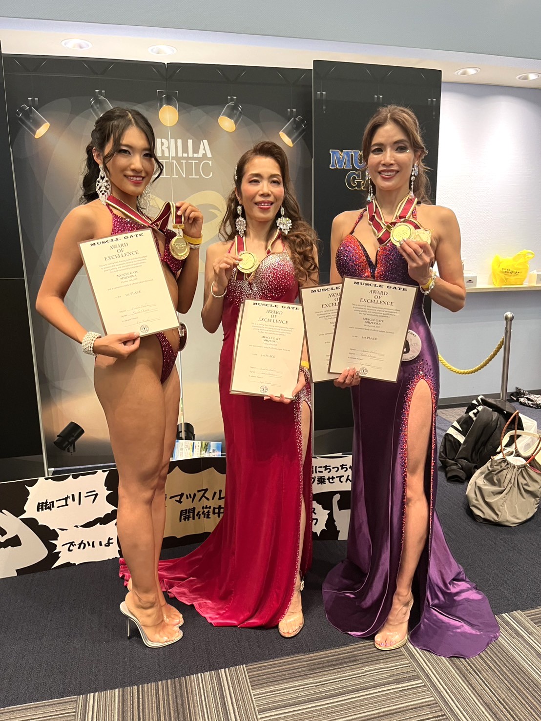 マッスルゲート静岡大会は昨年和美さんが優勝してジャパンカップ出場が決まった大会なので特別な思い入れがありました。和美さんの姿を見てオアシスのお客様が3人も出場して、内二人がジャパンカップの出場が決まり、また初出場なのに3部門で準優勝の快挙をなしとげました方もいました。