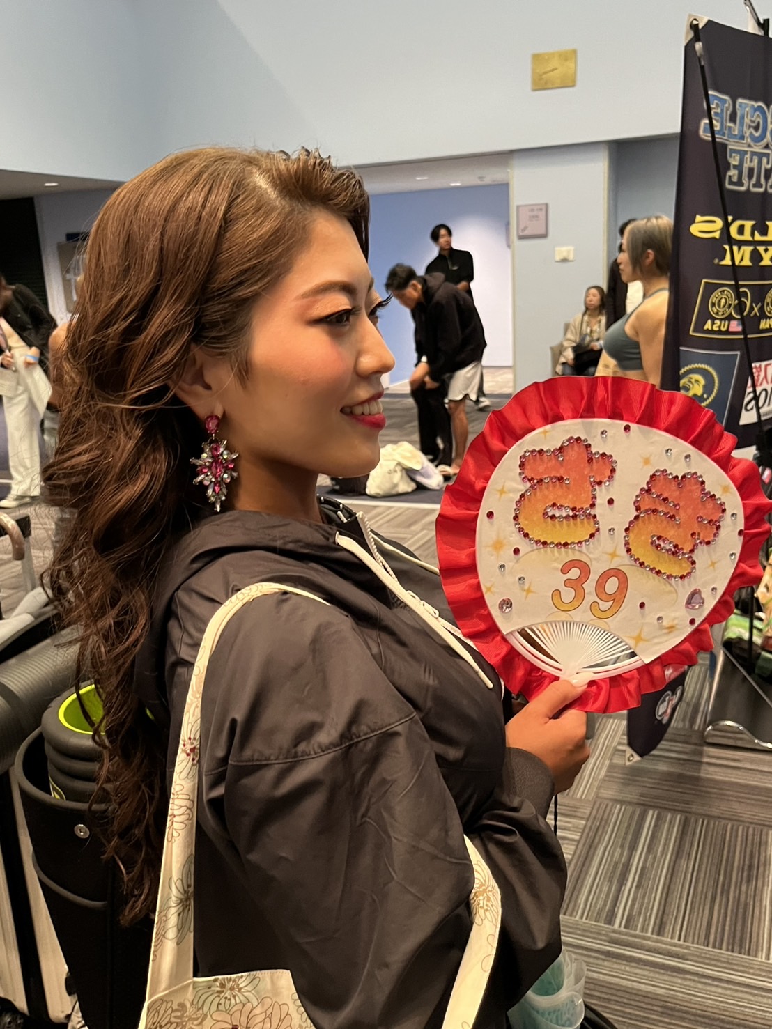 当日は朝5時半より7名の選手のヘアメイクを担当させてもらいました。10時頃セットが終わり急いで会場入りして応援に参加。